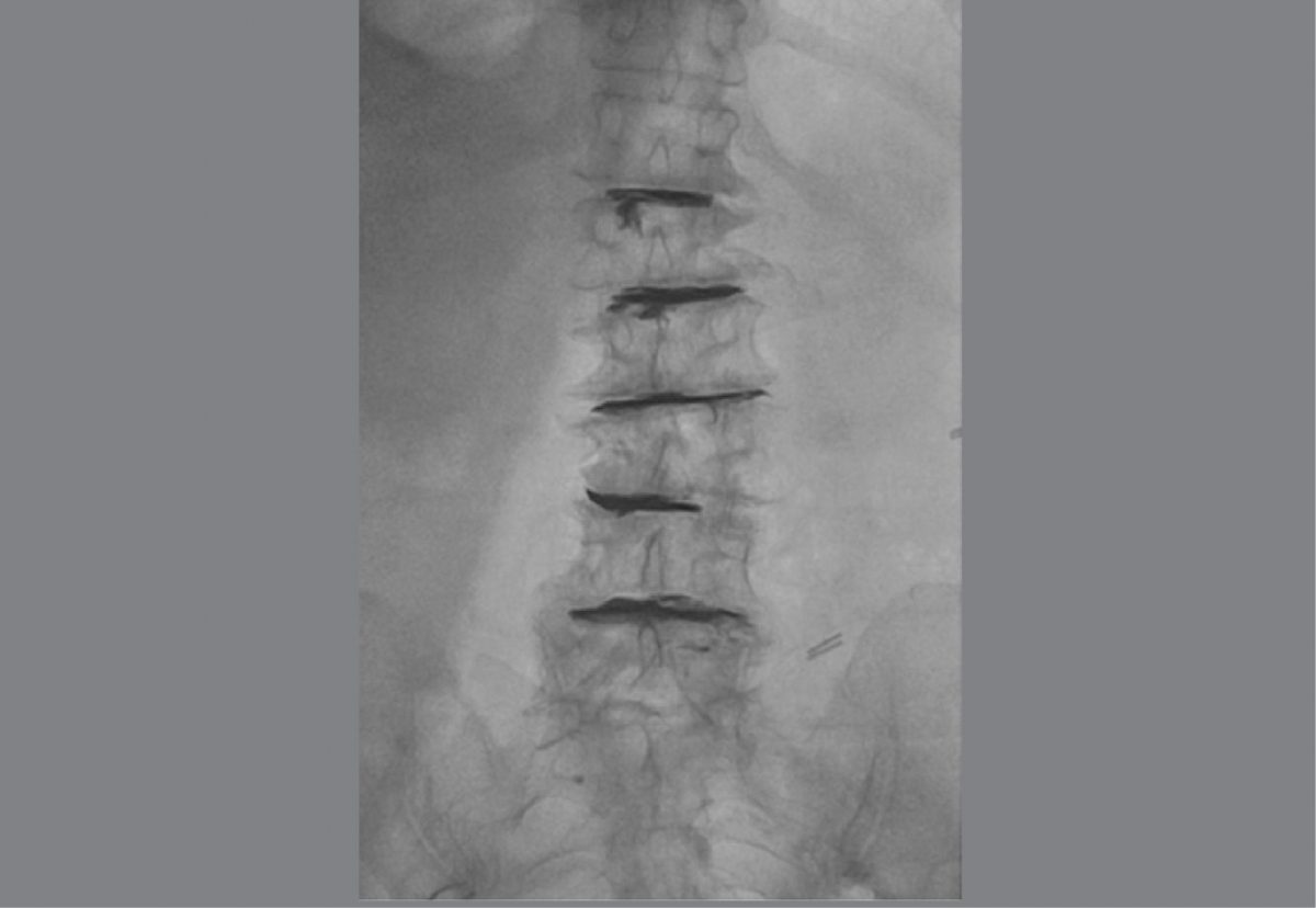 Percutaneous cement discoplasty (PCD) is a minimally invasive surgical technique, which provides segmental stabilization and an indirect decompression effect in cases of severe degenerative disc disease with vacuum phenomenon, useful in patients with comorbidities that contraindicate invasive surgical procedures.